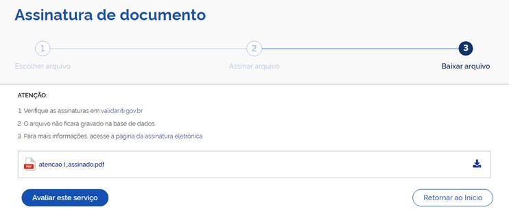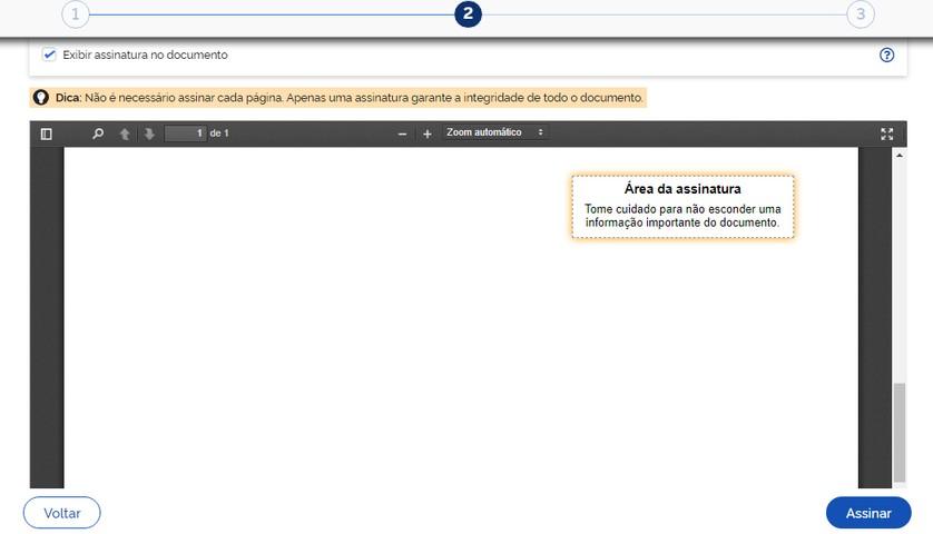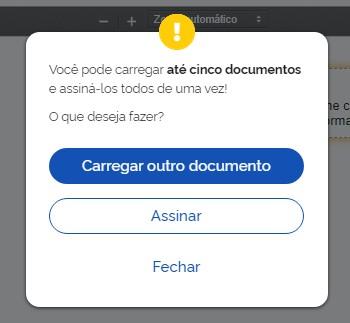 Abrirá uma segunda tela. Caso não tenha um outro documento para assinar, pode prosseguir no processo conforme indicado.