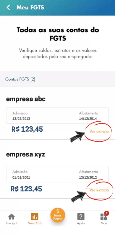 Na tela seguinte, clique em “Ver extrato” , conforme indicado na imagem ao lado.