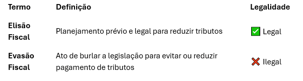 - Elisão fiscal é legal. Envolve planejamento e previsibilidade.