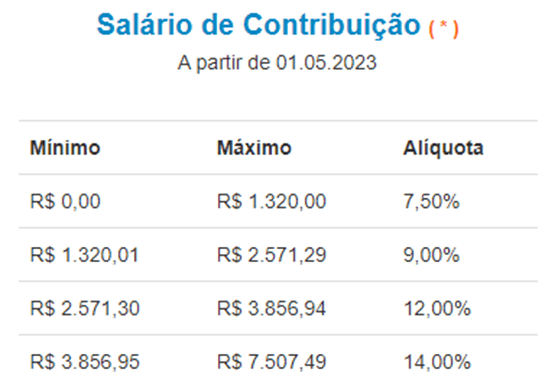 Em 01/05/2023 foi publicada a Medida Provisória nº 1.172 que dispõe sobre novo valor, passando a vigorar a partir de 1º de maio de 2023.